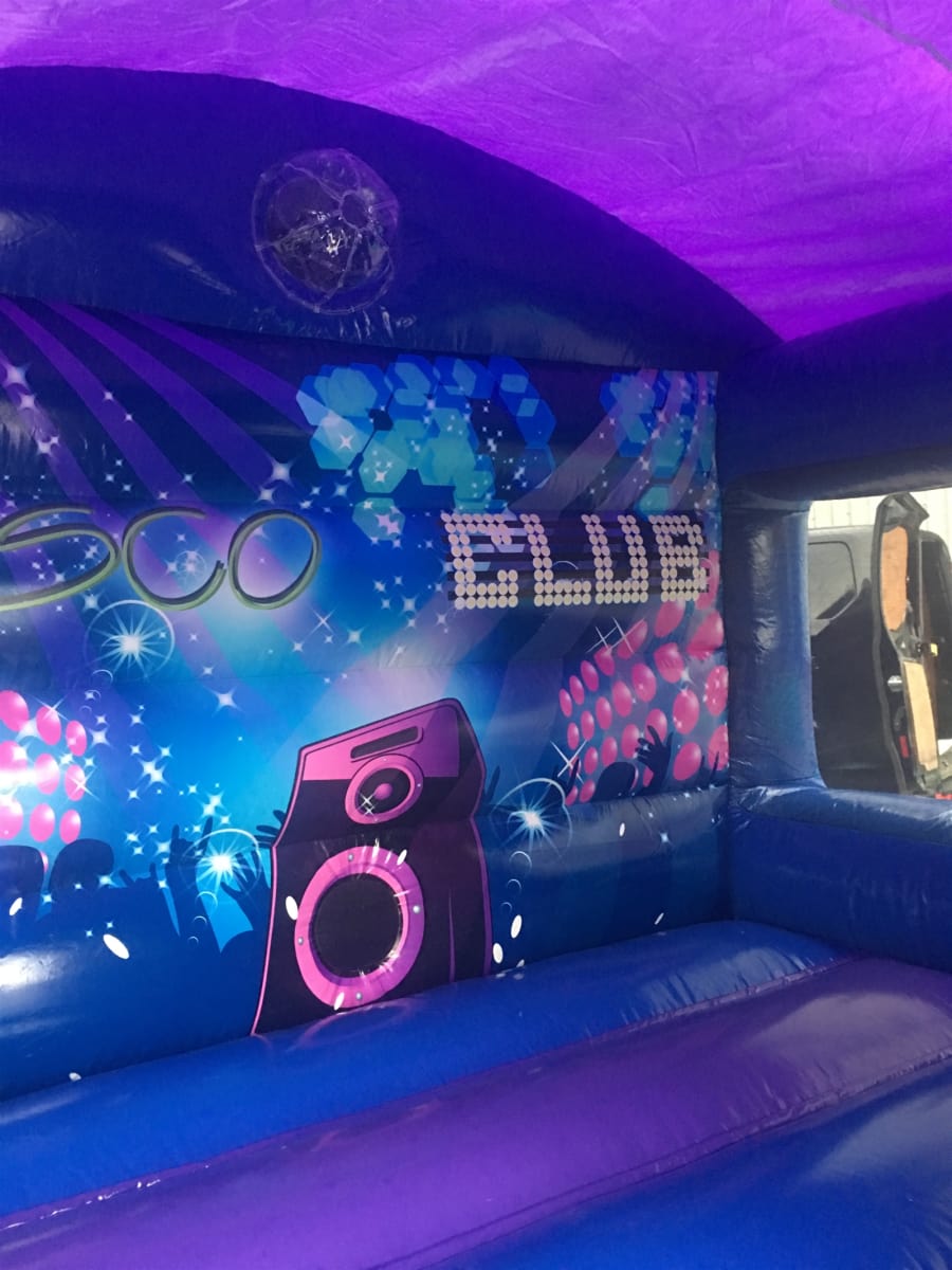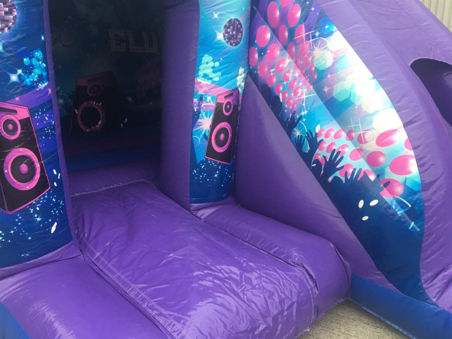 Our Disco Deluxe bounce and slide combo with built in bluetooth music amp and disco light. Absolutely fantastic bouncy castle that will keep the little ones entertained for hours. A classic disco theme perfect for both boys and girls.