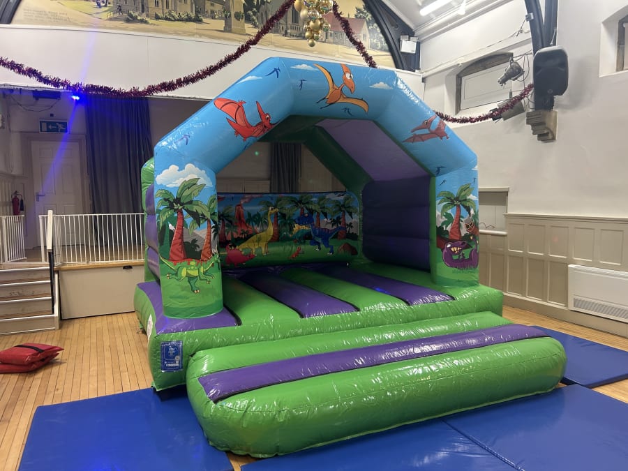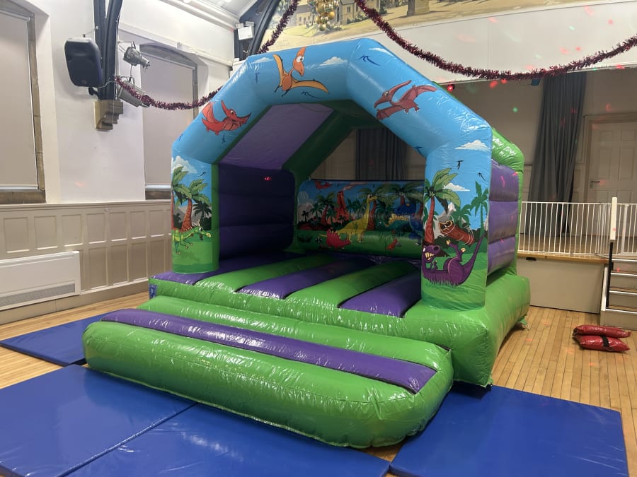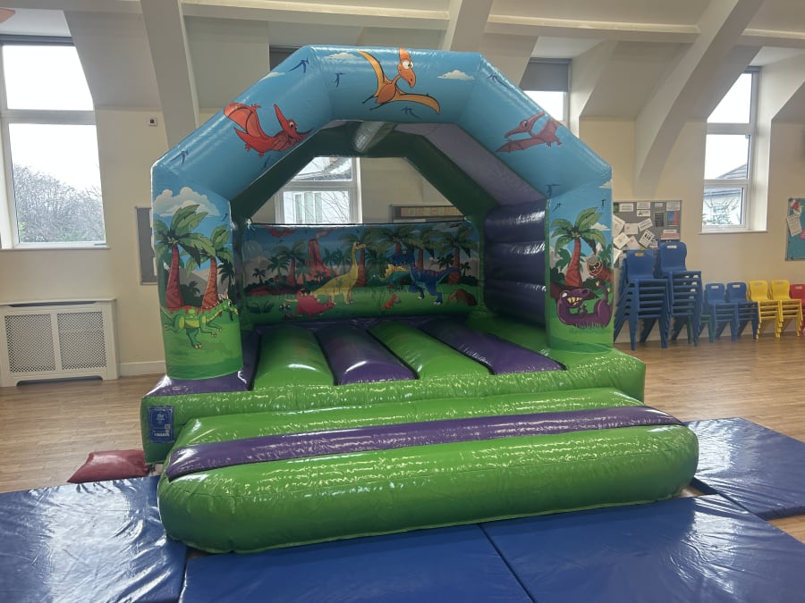 Deluxe DINOSAUR themed Bouncy Castle now available to hire from Fun Factor Leeds.