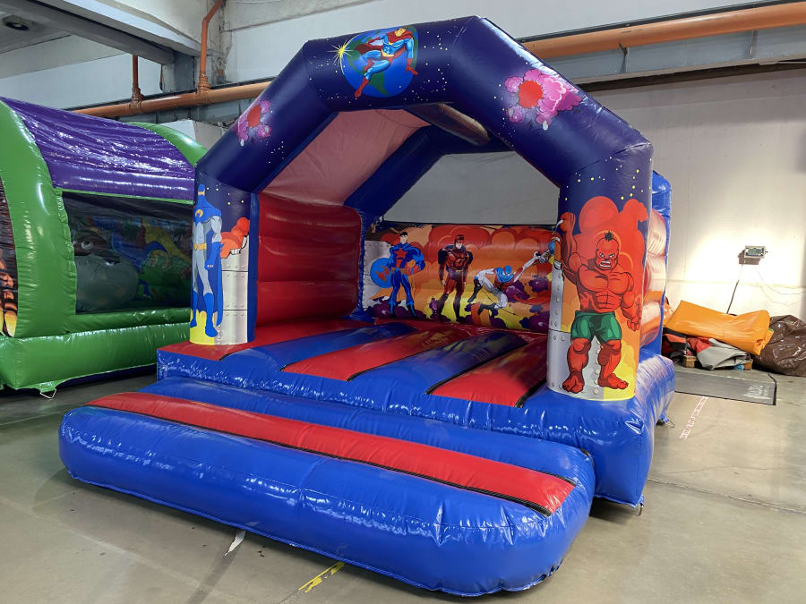 Deluxe SUPERHERO themed Bouncy Castle now available to hire from Fun Factor Leeds Ltd.